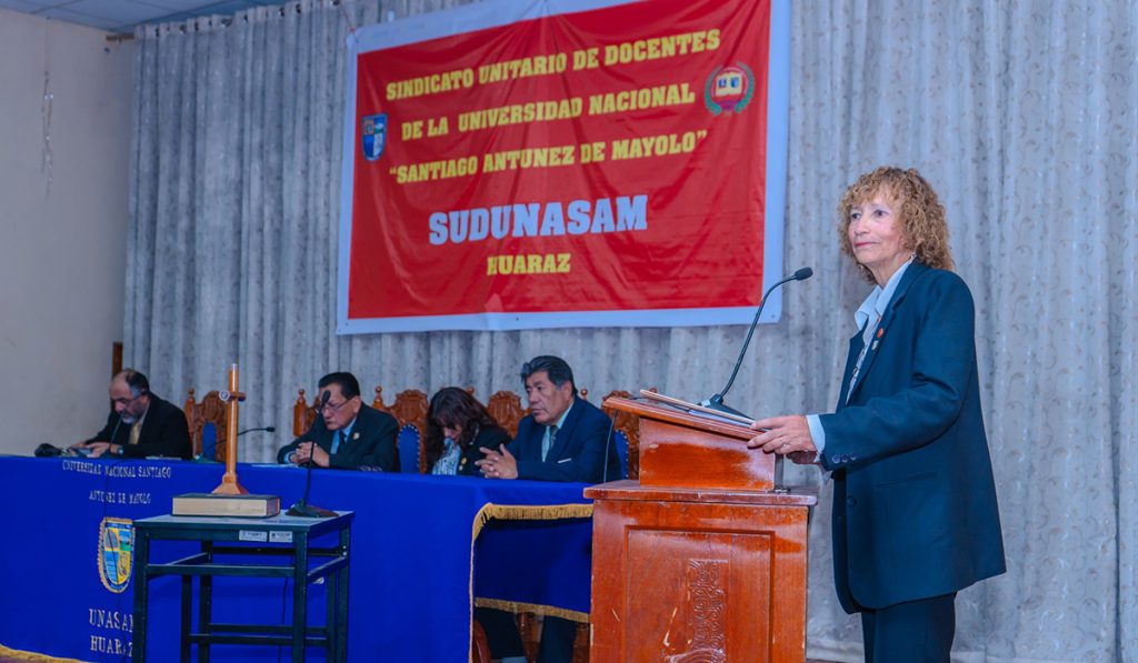 La nueva Junta Directiva del Sindicato Unitario de Docentes de la Unasam, que tiene como secretaria general a la Ing. Flormila Vicuña Pérez, juramentó ante la presencia de las principales autoridades universitarias y docentes.
